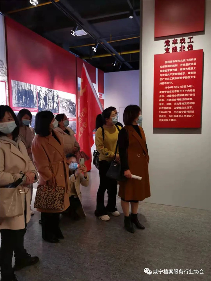 2022年3月6日,咸宁市档案服务行业协会组织党员和预备党员赴汀泗镇革命博物纪念馆参观学习,通过参观活动,进一步激发党员同志不忘初心、牢记使命的共同责任,不忘我们党带领人民艰辛探索、浴血奋斗所走过的革命道路,不忘近代中国发展史,不忘土地革命、抗日战争和解放战争史,不忘社会主义革命和建设以及改革开放史。