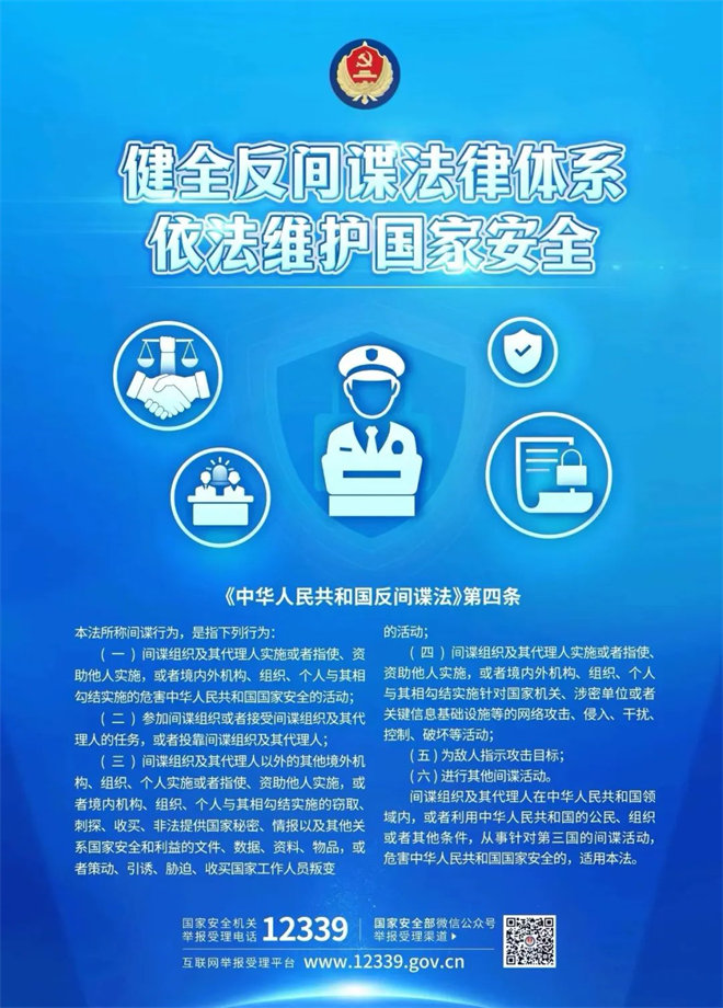 一年来,聚焦贯彻执行新修订《中华人民共和国反间谍法》,国家安全机关坚持统筹发展和安全、统筹传统安全和非传统安全、统筹维护和塑造国家安全,依法惩治了一批危害国家安全的违法犯罪活动,有效化解了一系列涉及国家安全的风险隐患。