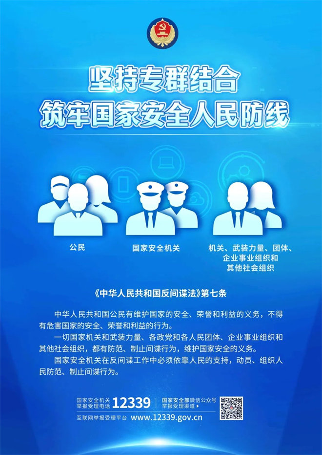 一年来,围绕学习宣传贯彻这部法律,国家安全部微信公众号刊发数十篇系列文章,从法律解读、案例剖析、风险提醒等不同方面,以权威阐释、互动问答、中英对照、视频动漫等多种形式,进行全方位、多维度宣介,在全社会形成了依法维护国家安全的强大声势。
