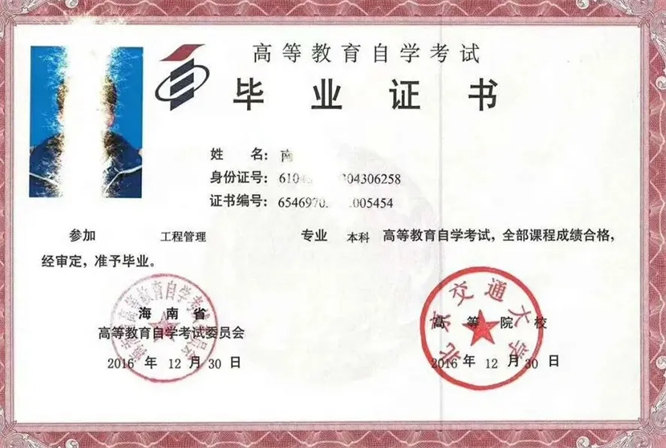 自学考试,只要经过国家组织的统一考试,取得合格成绩,即可获得毕业证书,符合条件的还可以申请获取学士学位。自考不受年龄和前置学历的限制,但自考本科,必须在拿到本科毕业证书之前,有专科毕业证书。毕业证抬头为“高等教育自学考试”。另自考毕业证专升本(专科在读报自考毕业证则叫专套本):是以自学考试性质为主的学历方式,学习形式自由。报考时间和专业不受限制,每年两次考试(4月份和10月份),报考时间为考前一个半月左右,专业不同考试科目不同。