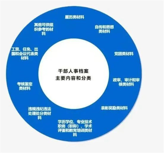 《干部人事档案工作条例》指出:干部人事档案是各级党委(党组)和组织人事等有关部门在党的组织建设、干部人事管理、人才服务等工作中形成的,反映干部个人政治品质、道德品行、思想认识、学习工作经历、专业素养、工作作风、工作实绩、廉洁自律、遵纪守法以及家庭状况、社会关系等情况的历史记录材料。干部人事档案是教育培养、选拔任用、管理监督干部和评鉴人才的重要基础,是维护干部人才合法权益的重要依据,是社会信用体系的重要组成部分,是党的重要执政资源,属于党和国家所有。