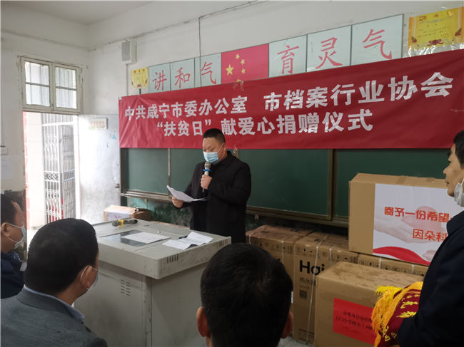 中共咸宁市委办公室、市档案行业协会“扶贫日”献爱心捐赠仪式