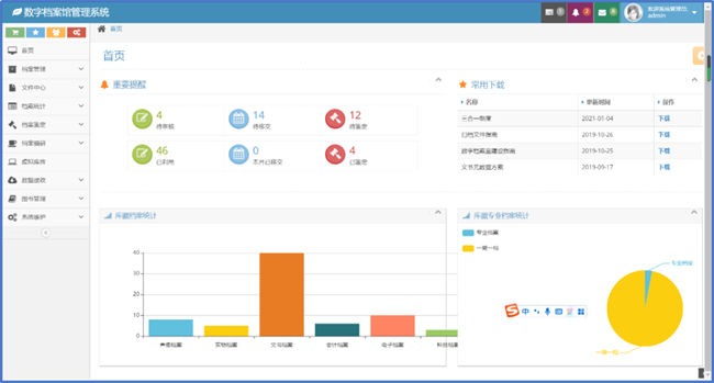 “锦档案”中,用户可实现个性化信息内容的自由定制;接入各种服务模块(如归档平台、利用平台、虚拟库房等);同时,系统可对六大门类及专业档案进行统计,实现真正的快速部署、灵活扩展、个性定制,为用户的高效整理筑牢根基。