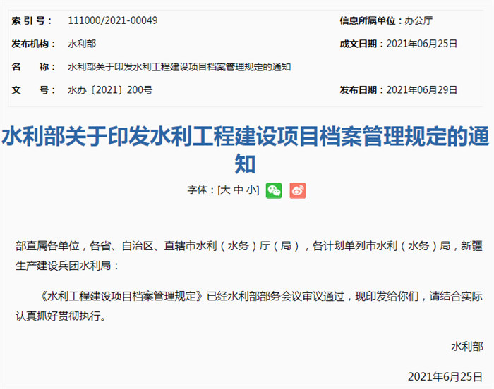 为了进一步加强水利工程建设项目档案(以下简称项目档案)规范化管理,根据《…